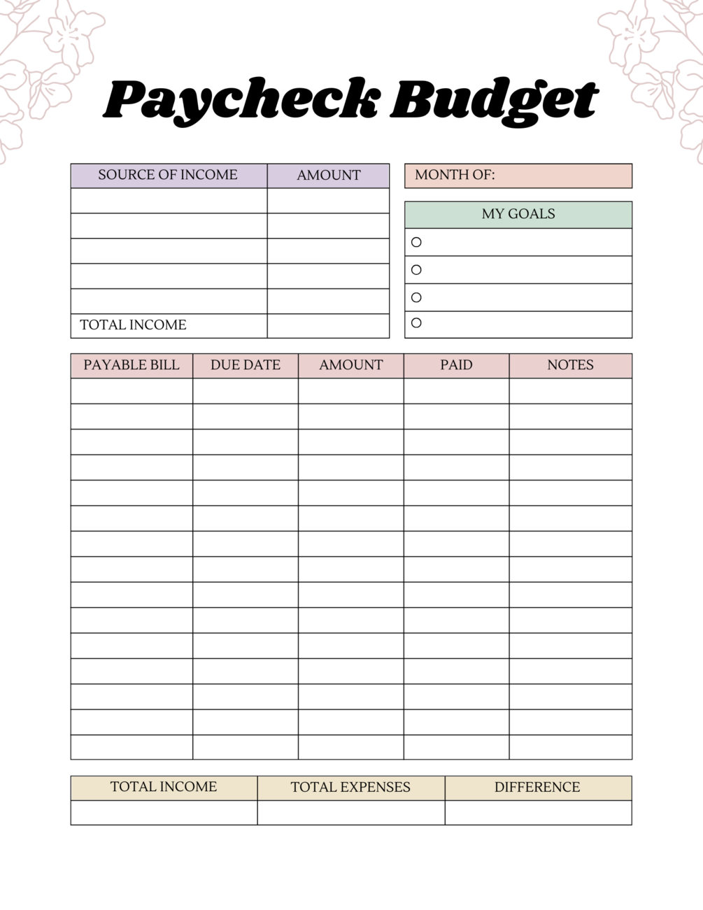 Please note: This is a digital product. No physical item will be shipped. Upon purchase, you will receive an instant download of the Paycheck Budget Planner, ready for you to print or use digitally. Enjoy the convenience of getting started right away!